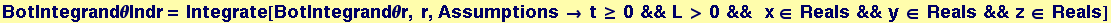 Try and see if we can do one of the two integrals. First, let's try theta: