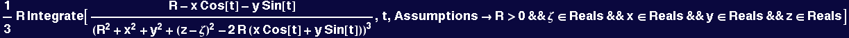 We can use the same function name twice, but with a different number of arguments. But, first we will try to do at least one of the two integrations symbolically. If we can do this, it will reduce the original numerical integration from three dimensions down to 1---which is a nice bargain if we can find it.