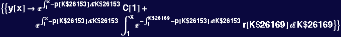 The dummy integration variables and any integration constants are picked by Mathematica . Note that we asked Mathematica to solve the most general form of homogeneous linear first-order ODE, and we got a solution in a very general form that is equivalent to Kreyszig Eq. (3), p. 33. Here is a more specific problem and the solution found by Mathematica: