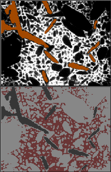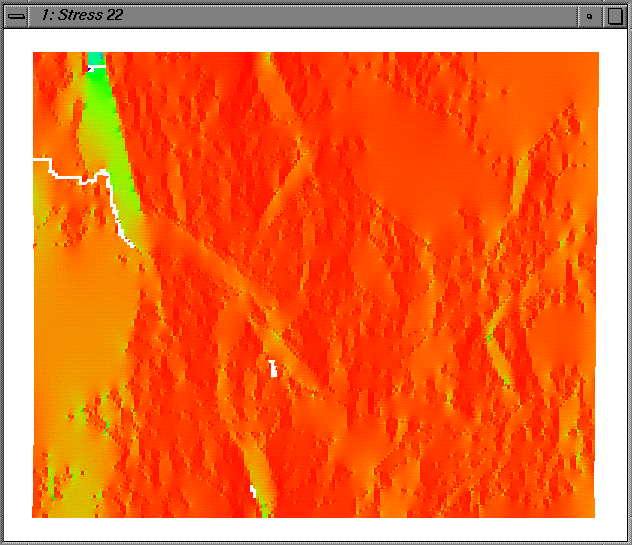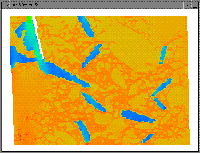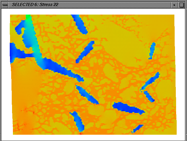 Hydrostatic pressure distribution in Alumina phase in an Aluminum/Alumina Metal/Ceramic Composite. Courtesy of Siegfried Skirl, computation by Ed Fuller and Siegfried.